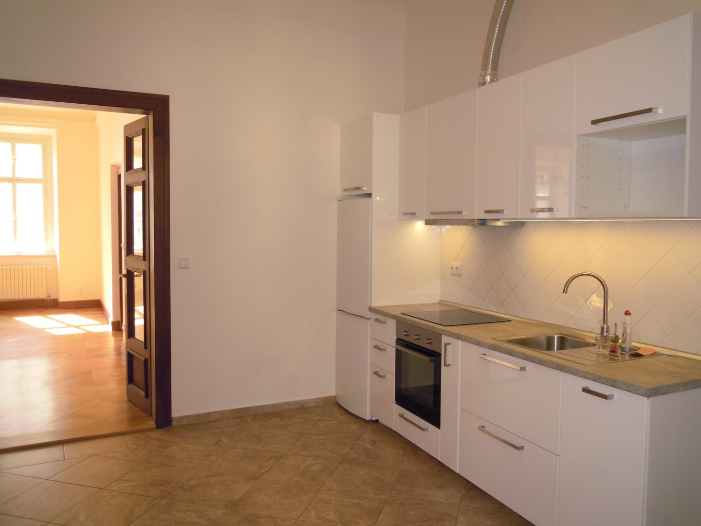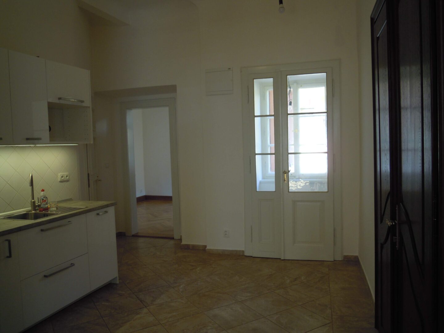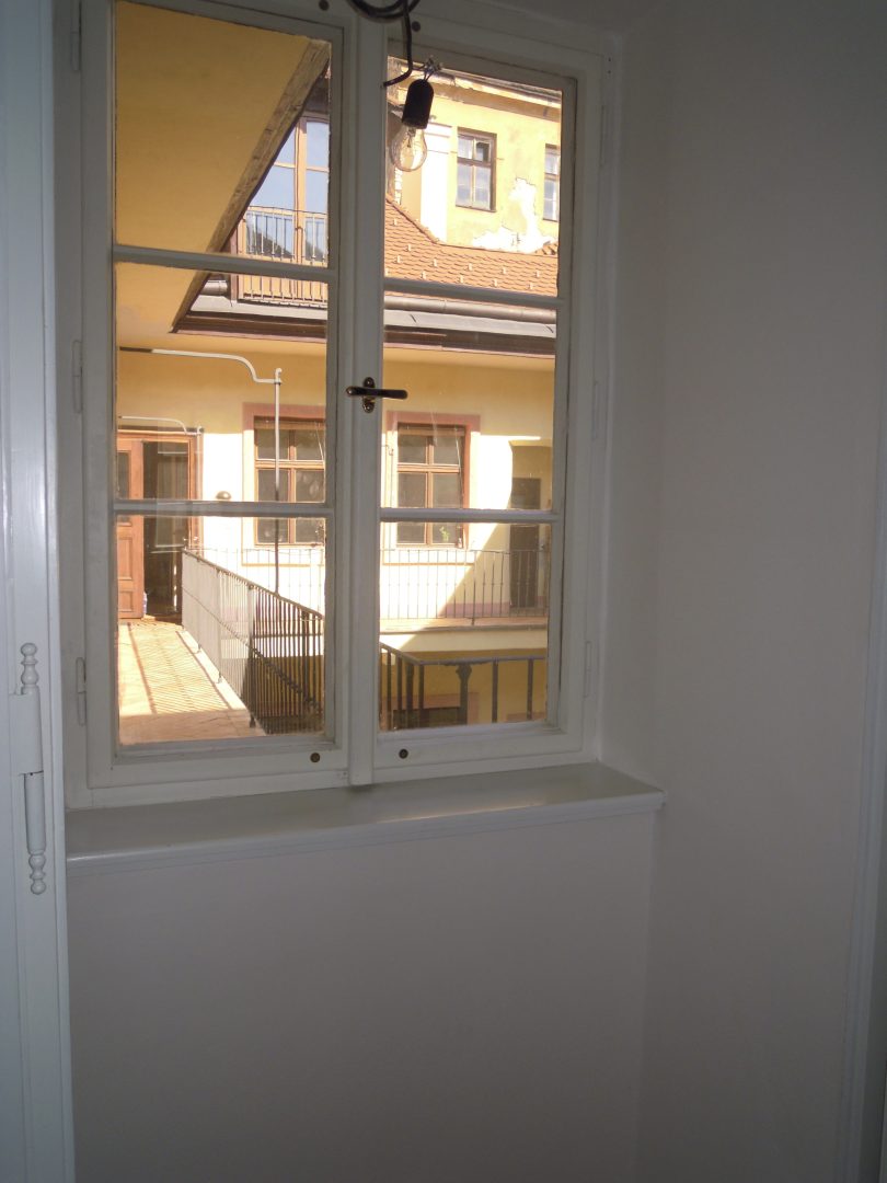 The kitchenette is prepared in the lobby also with a window into the courtyard, It is also possible to put a kitchen in a second smaller room.